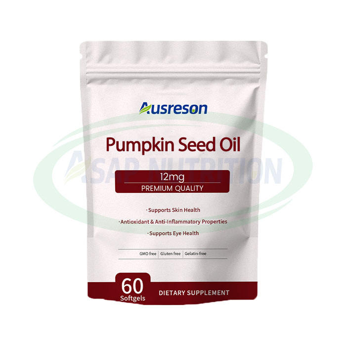น้ำมันเมล็ดฟักทองสกัดเย็น Ausreson OEM ชนิดซอฟต์เจล กรดไขมัน ไฟโตสเตอรอล เสริมสร้างภูมิคุ้มกัน อัตราส่วน 10:1 ผ่านการทดสอบฮาลาล/โคเชอร์