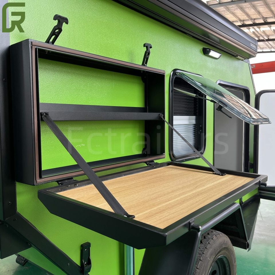ออสเตรเลียรถพ่วงสำหรับท่องเที่ยวรถบ้านเคลื่อนที่รถตู้ออกค่ายมีห้องนอนกันสาดใช้ในห้องครัว