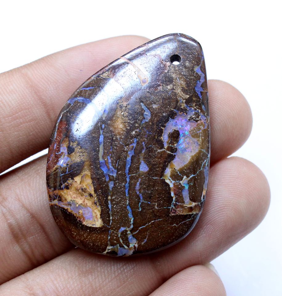 Australian Boulder Opal Cabochon 78.00 Carat Natural Fancy Shape Gemstone Front Drills Jewelry Pendant Loose Gemstones