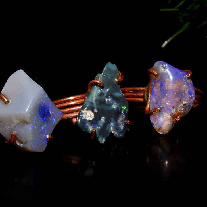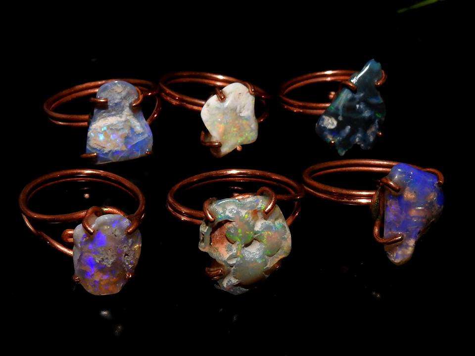 แหวนโอปอลธรรมชาติจากออสเตรเลีย หุ้มด้วยลวดทองแดง สไตล์ลำลอง/สปอร์ต รูปทรงหยาบ ใช้ได้ทุกวัน ใส่ในงานแต่งงานได้ เหมาะสำหรับทั้งชายและหญิง