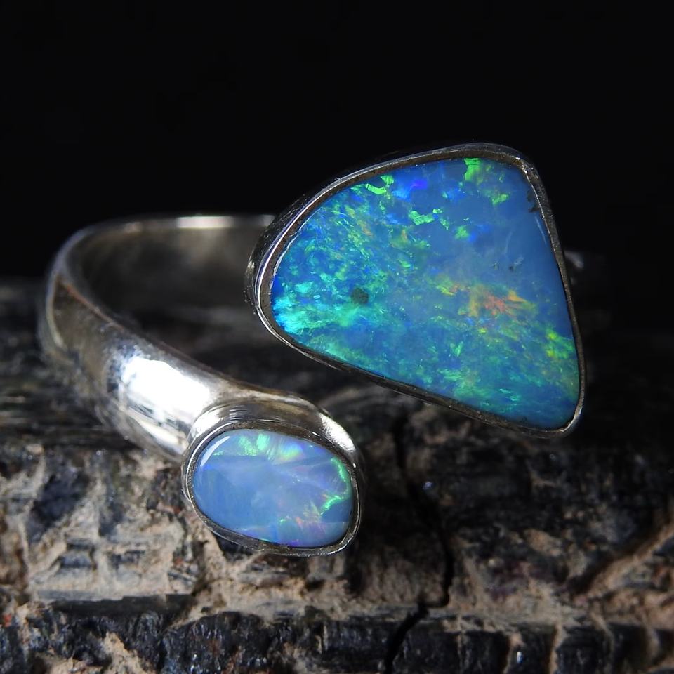 แหวนโอปอลออสเตรเลียแบบดับเบิ้ลเบเซลปรับขนาดได้-เงินแท้925-พลอยประจำเดือนตุลาคม-เครื่องประดับทำมือ-ของขวัญสำหรับเธอ-สำหรับงานปาร์ตี้