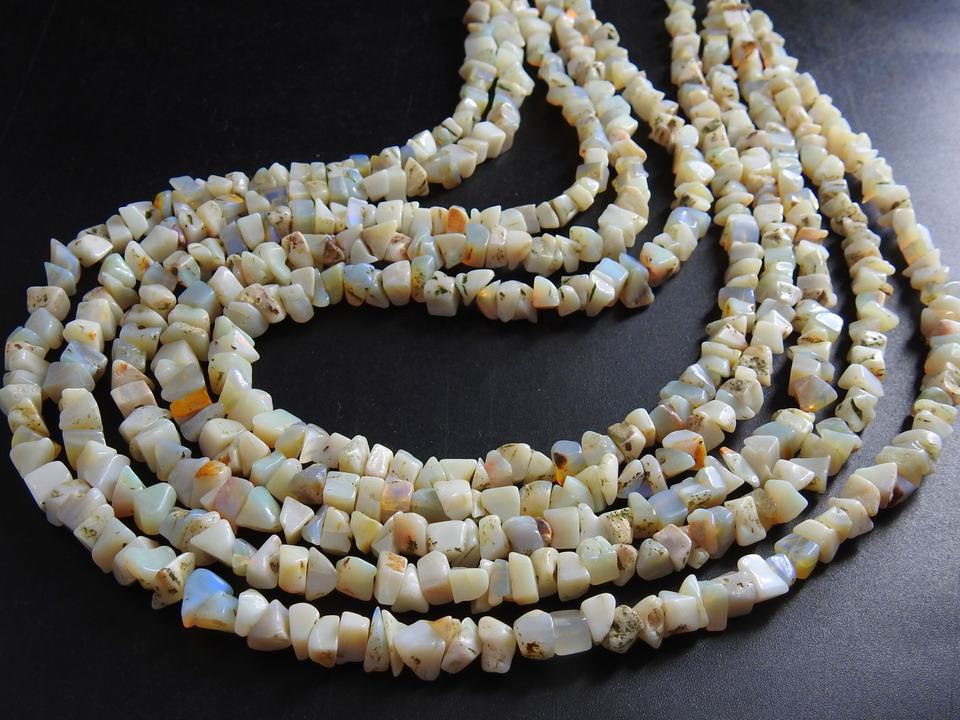 ลูกปัดหยาบสีขาวโอปอลออสเตรเลียชิปแบบไม่ได้ตัดเป็นก้อนก้อนอัญมณีแบบดิบๆแบบธรรมชาติขนาด16นิ้ว