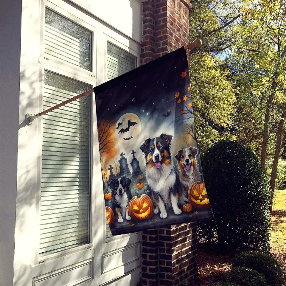 ธงบ้านฮาโลวีนสำหรับเลี้ยงแกะออสเตรเลียแบนเนอร์ตกแต่งระเบียงขนาดใหญ่เสาโพลีเอสเตอร์หลากสีติดผนัง