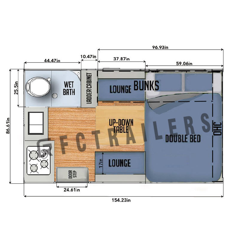 รถพ่วงคาราวานเดินทางขนาด19ฟุตน้ำหนักเบาแบบมาตรฐานออสเตรเลีย