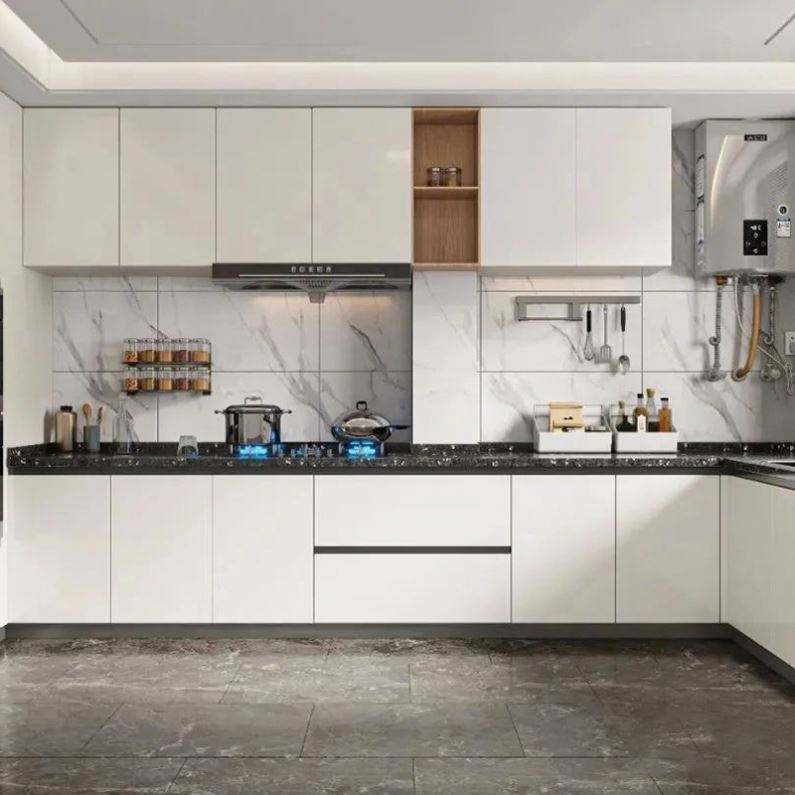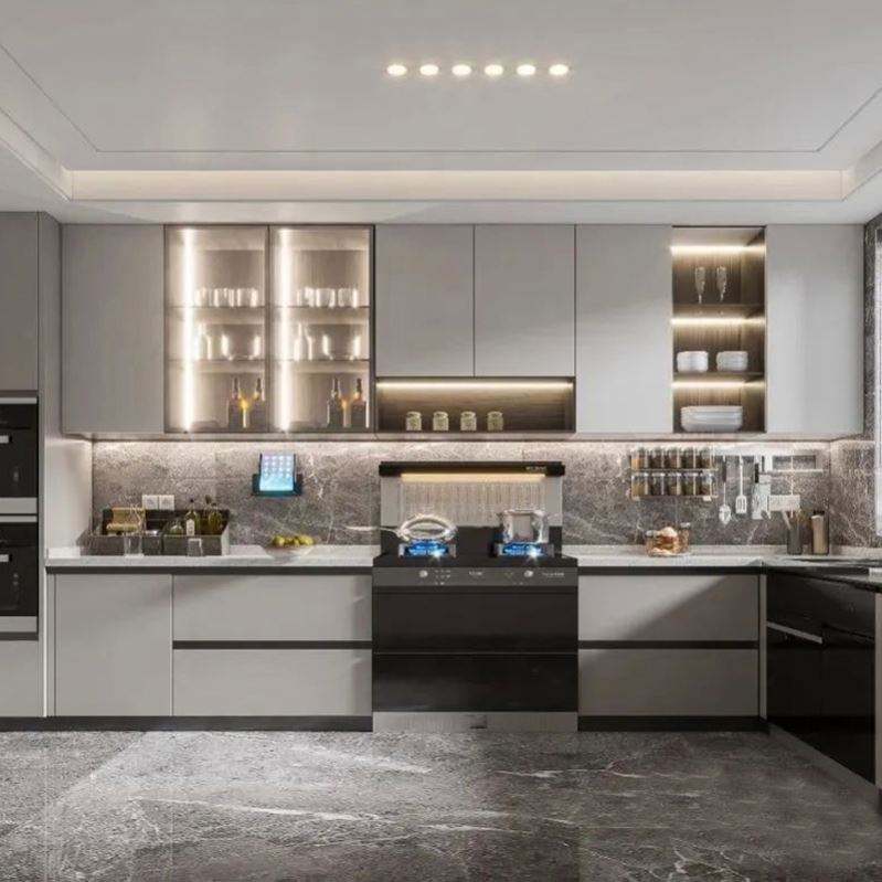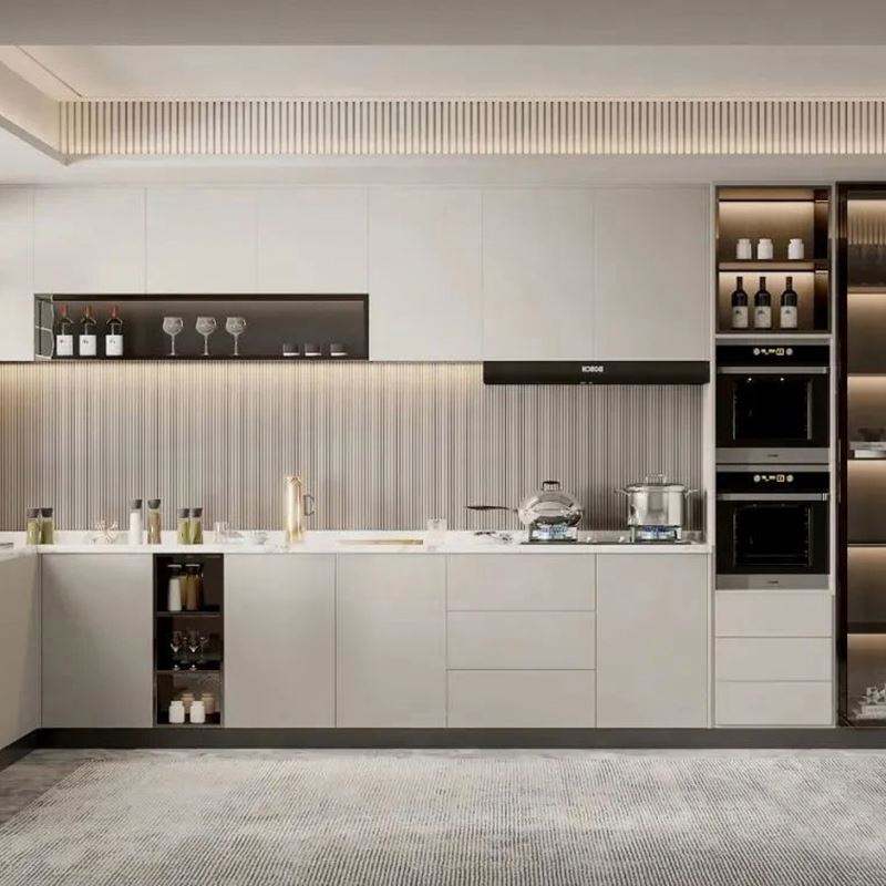 ตู้ครัวสไตล์โมเดิร์นแบบมาตรฐานออสเตรเลีย เฟอร์นิเจอร์สไตล์ยุโรป พร้อมเคลือบแลคเกอร์ วัสดุไม้และ MDF สำหรับอพาร์ทเมนต์