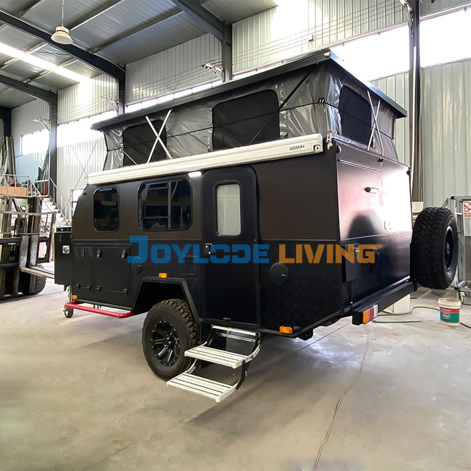 รถพ่วงแคมป์ปิ้งแบบป๊อปอัพสไตล์ออสเตรเลีย โครงสร้างอะลูมิเนียมน้ำหนักเบา แข็งแรง ทนทาน พร้อมครัวแบบเลื่อนออกได้ สำหรับการเดินทางแบบออฟโรด 2