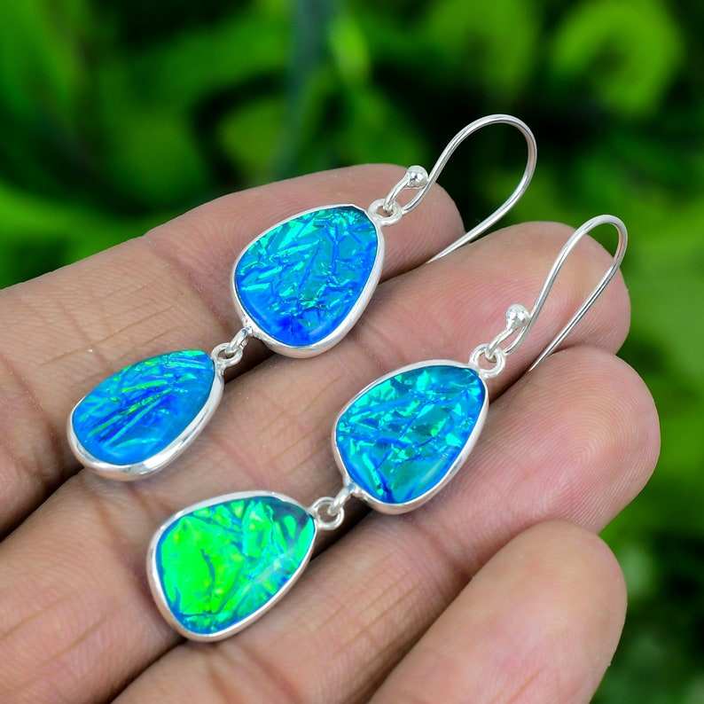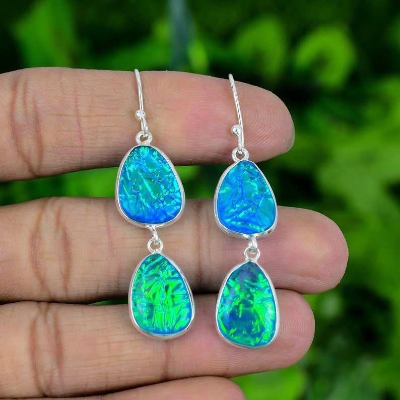 ต่างหูโอปอลไฟร์ออสเตรเลียแบบสามเม็ด เงินแท้ 925 งานแฮนด์เมด เครื่องประดับพลอย ได้รับการรับรองจาก IGI เหมาะสำหรับงานฉลองครบรอบและงานปาร์ตี้สไตล์ชาติพันธุ์