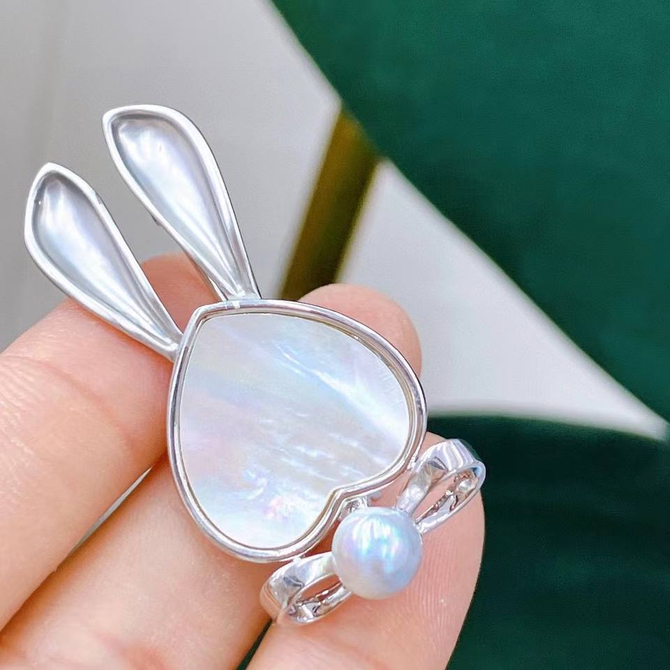 เข็มกลัดรูปกระต่ายประดับมุกน้ำเค็มธรรมชาติสีขาวเวนชีไชน่าไวท์เมอร์ธเพิร์ล ขนาด 7-8 มม. มีตำหนิเล็กน้อย รุ่นดอกไม้ติดหน้าอก 35235