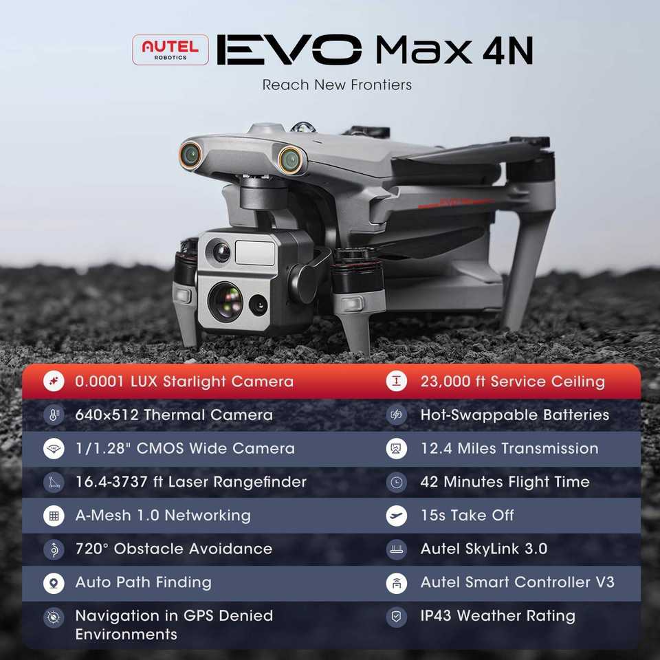 โดรน Autel EVO MAX 4N รุ่น Universal Edition พร้อมกล้องมองกลางคืน GPS เลเซอร์ ควอดคอปเตอร์ ระยะบิน 20 กม. รีโมทคอนโทรลอัจฉริยะ ความละเอียด 8K