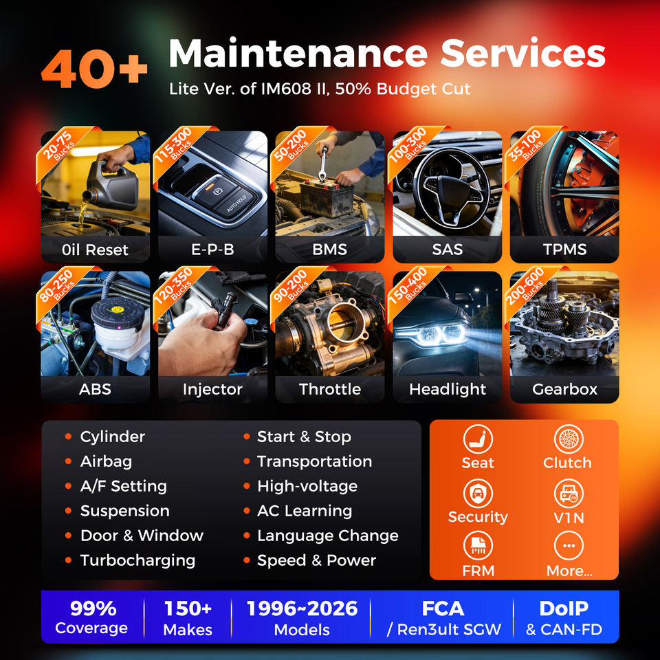 OBD2, เครื่องอ่านโค้ด, สแกนเนอร์วินิจฉัยรถยนต์, วิเคราะห์ระบบเต็มรูปแบบ, การเข้ารหัส ECU, ตรวจสอบไฟเครื่องยนต์, อะแดปเตอร์