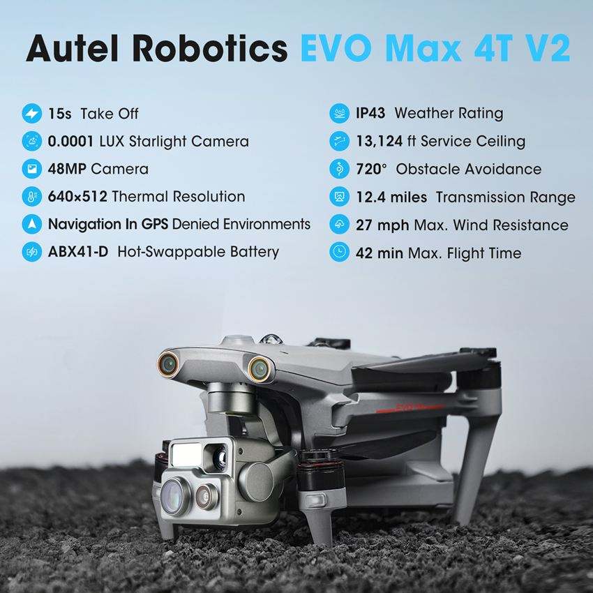โดรนถ่ายภาพความร้อน Autel Robotics EVO Max 4T V2 รุ่นเชิงพาณิชย์ พร้อมเลเซอร์ มีสินค้าในคลังสินค้าฮ่องกง จัดส่งรวดเร็ว