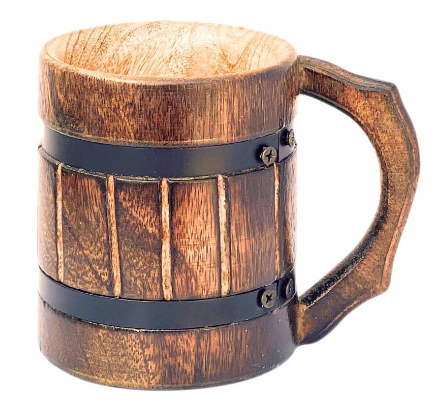 แก้วเบียร์ทำจากไม้เกรดเยี่ยมของ100% แท้สีน้ำตาลแบบย้อนยุคทำด้วยมือด้วยมือสำหรับดื่มเย็นหรือไวน์ขาว