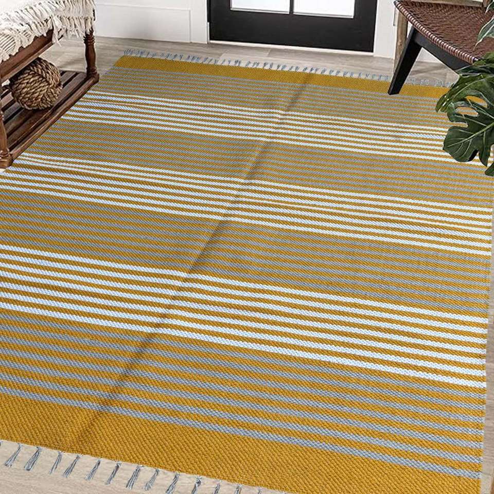 พรมผ้าฝ้ายถักมือ5x7ฟุตของแท้เหมาะสำหรับห้องนั่งเล่นห้องนอนและพื้นที่เลานจ์