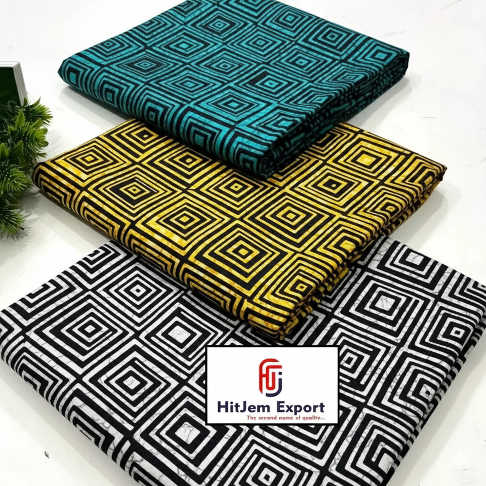 ผ้าพิมพ์ลายแองการาแอฟริกันแท้สำหรับตัดเย็บชุดเดรส งานควิลท์ งานฝีมือ ของตกแต่งบ้าน โดยผู้จัดจำหน่ายฮิตเจม เอ็กซ์พอร์ต ไอส์แลนด์