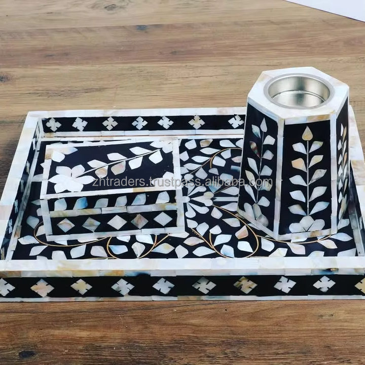 ชุดอุปกรณ์เสริมสุดหรูสำหรับน้ำหอมทางศาสนาและสร้างบรรยากาศภายในบ้าน เตาเผาบาคูร์แบบอาหรับทำมือประดับมุก