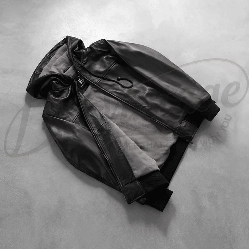 เสื้อแจ็คเก็ตนักบิน MA1 หนังแท้สีดำสำหรับผู้ชาย คอเบสบอล เสื้อโค้ทนักบิน ขายส่ง เสื้อผ้าหนังแท้แนวสตรีท
