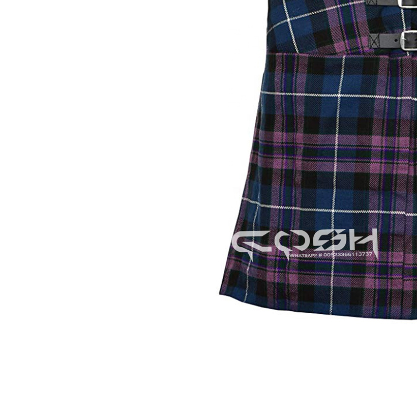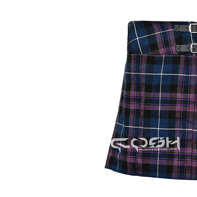 กระโปรงลายตารางหมากรุกลายตารางหมากรุกสำหรับผู้ชายและผู้หญิงของแท้สีน้ำเงินและสีม่วง