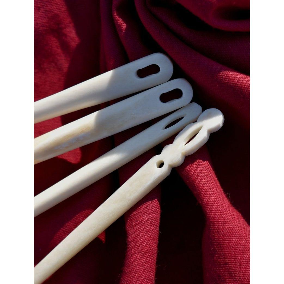 เข็มเย็บหนังแท้จากกระดูกควาย ขัดเงาด้วยมือ กันน้ำ รูเกลียวเรียวทันสมัย อุปกรณ์งานฝีมือสำหรับเย็บหนัง
