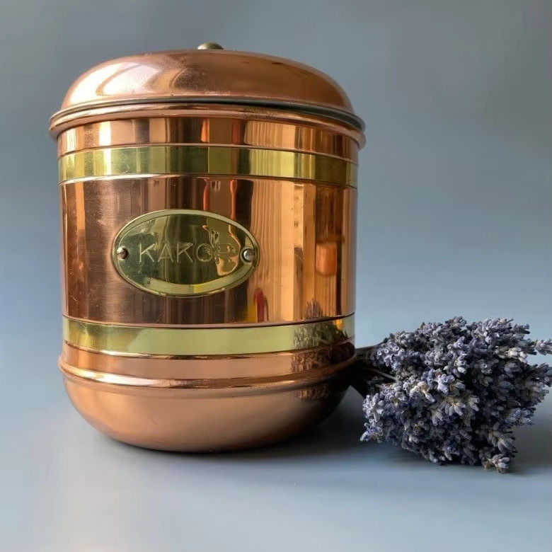 ชุดกระป๋องทองแดงแท้ที่มีลักษณะเป็นคราบธรรมชาติและตกแต่งทางอุตสาหกรรมสำหรับห้องครัวแบบชนบทและบ้านไร่