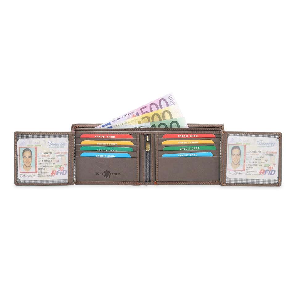 กระเป๋าสตางค์หนังวัวแท้สำหรับผู้ชายกระเป๋าสตางค์หนังรุ่นเดินทางแบบบางมีสไตล์พร้อมการป้องกัน RFID ที่ปลอดภัย
