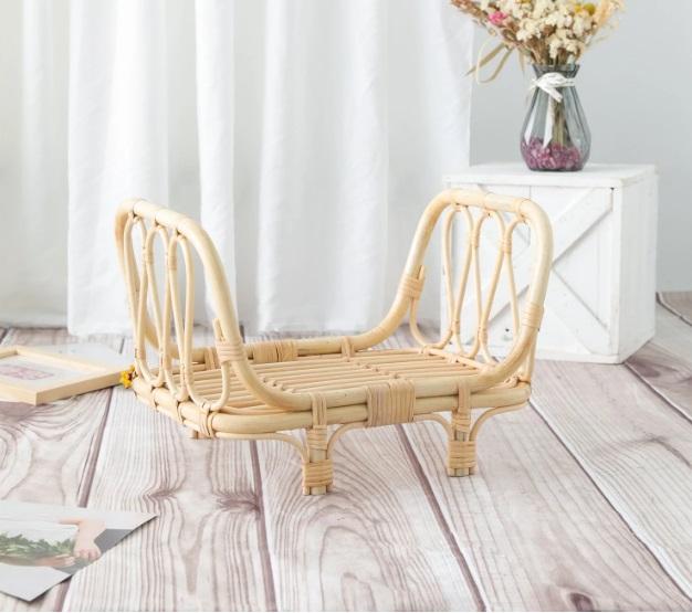 ตะกร้าหวายไม้ไผ่สีครีมของแท้ถังและอุปกรณ์ประกอบฉากสำหรับถ่ายภาพเด็กแรกเกิด