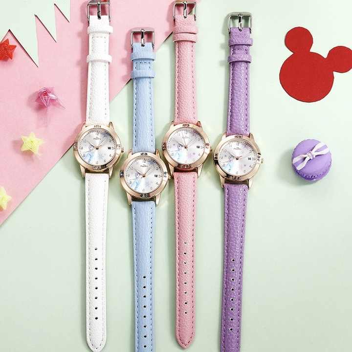 สินค้าดิสนีย์ของแท้ กล่องของขวัญวันเกิด ภาพยนตร์โฟรเซ่น เอลซ่า เจ้าหญิง การ์ตูน หนังควอตซ์ นาฬิกาเด็กน่ารัก 29 มม. สำหรับเด็กผู้หญิง