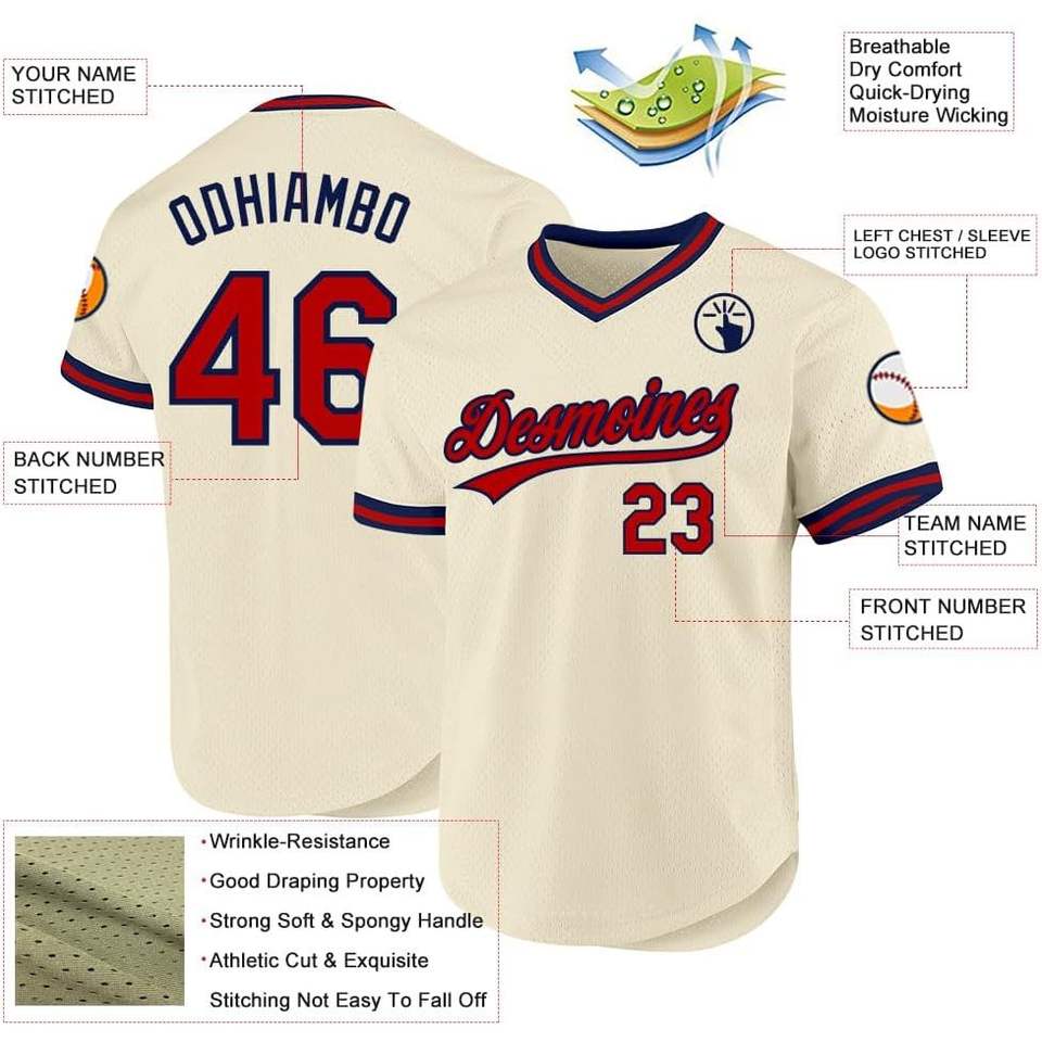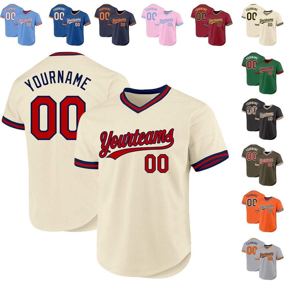 เสื้อเบสบอลเยาวชนแบบสั่งทำพิเศษของแท้ คอวีตาข่ายขนาดใหญ่ ปักชื่อและหมายเลขส่วนตัว สไตล์ย้อนยุค