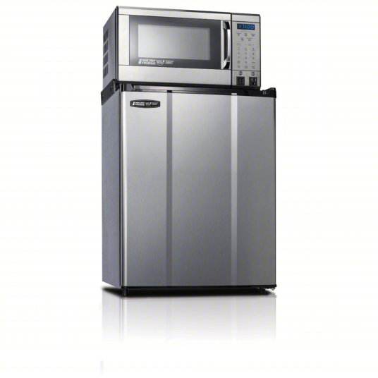 ตู้เย็นแบบประตูฝรั่งเศสแท้ พร้อมไมโครเวฟในตัว ความจุรวม 2.3 คิว ตัวเครื่องสแตนเลส คอมเพรสเซอร์