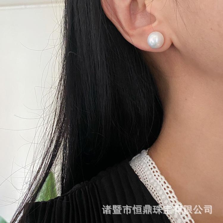 ต่างหูมุกน้ำจืดแท้ Edison Pearl Aurora สีขาวขนาดใหญ่ ดีไซน์เรียบง่าย พร้อมรูแท้