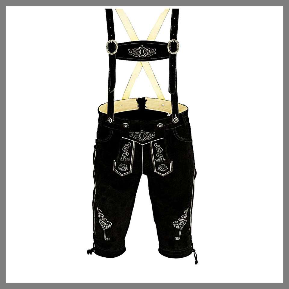 กางเกงหนังสีดำสำหรับผู้ชายสไตล์ Lederhosen ของแท้จากเทศกาลแอลป์เยอรมัน ขนาด EU 46 ถึง 62