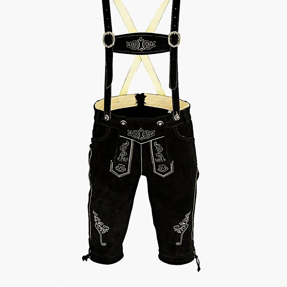 Authentic German Black Lederhosen Men’s Heavy Genuine Leather Shorts EU Sizes 46 to 62