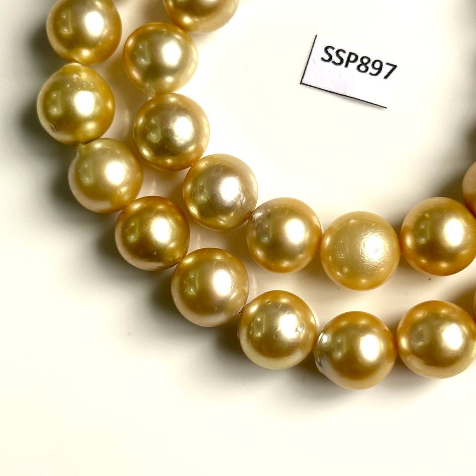 ลูกปัดไข่มุกใต้ทะเลสีทองแท้9-11มม. 16 "ความเงางามของไข่มุกทะเลใต้ธรรมชาติที่สมบูรณ์แบบขายส่งจำนวนมาก