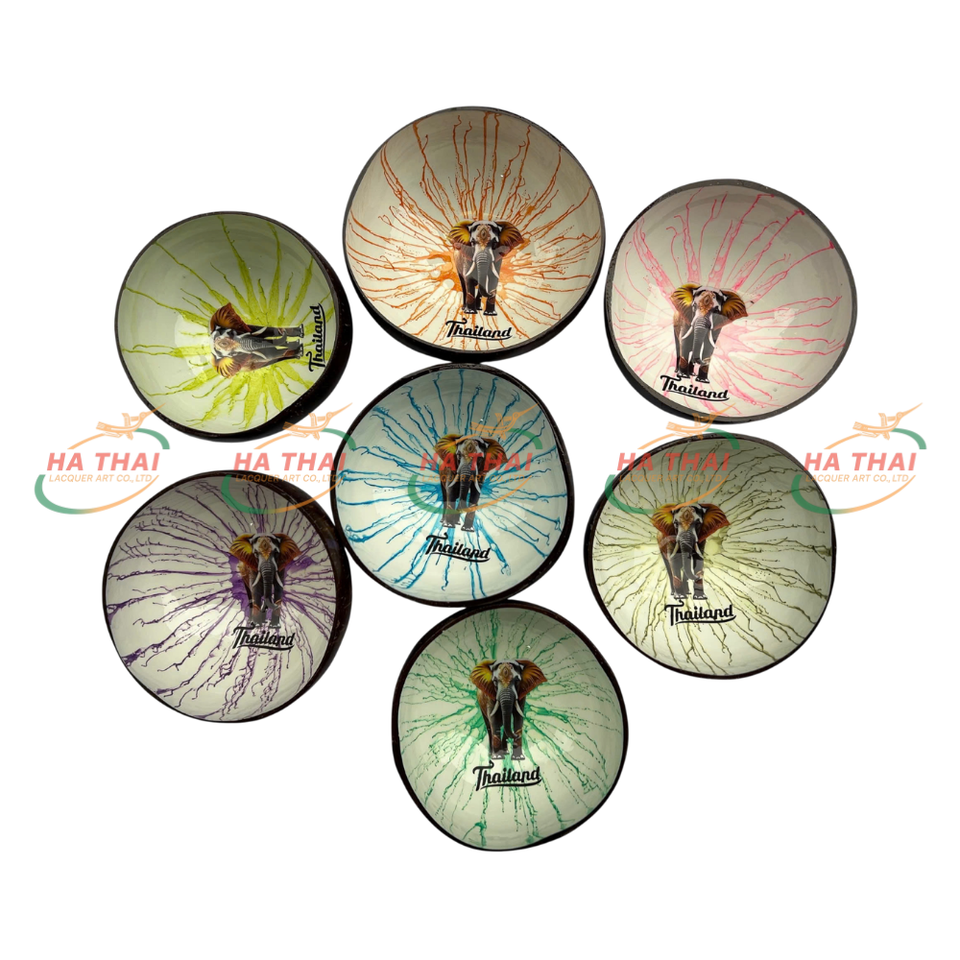 ชามมะพร้าวทาสีด้วยมือของแท้เทคนิคช่างฝีมือแบบดั้งเดิมทำด้วยมือสั่งซื้อจำนวนมาก