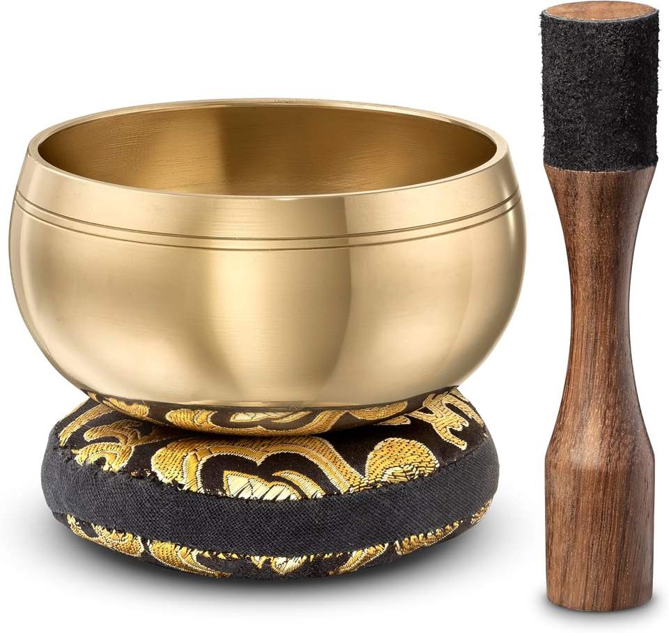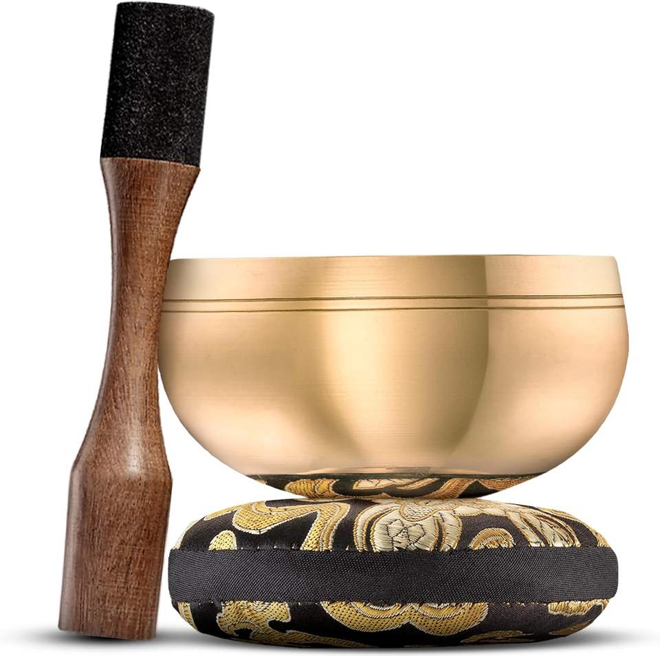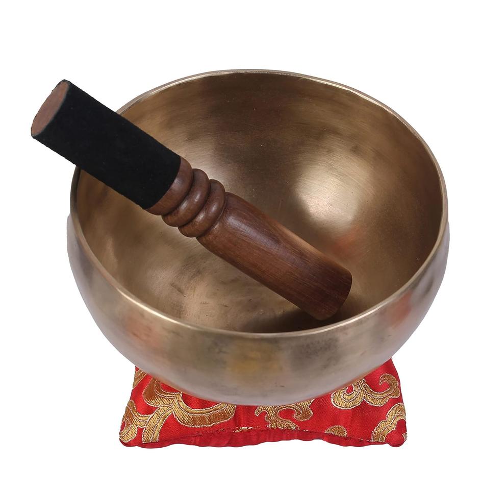 ชามทองเหลืองสำหรับร้องเพลงของชาวทิเบตถูกทุบด้วยมือผู้ผลิตทำมือจากทิเบตอินเดีย