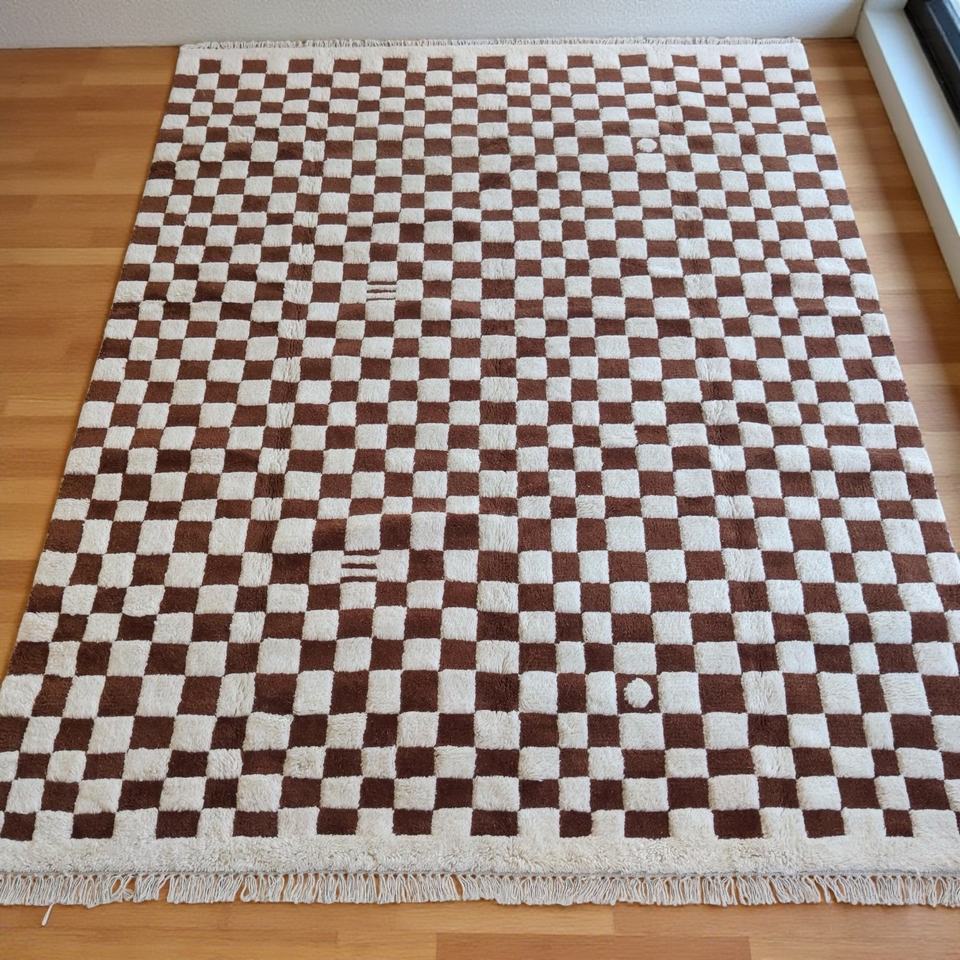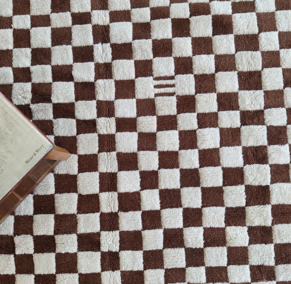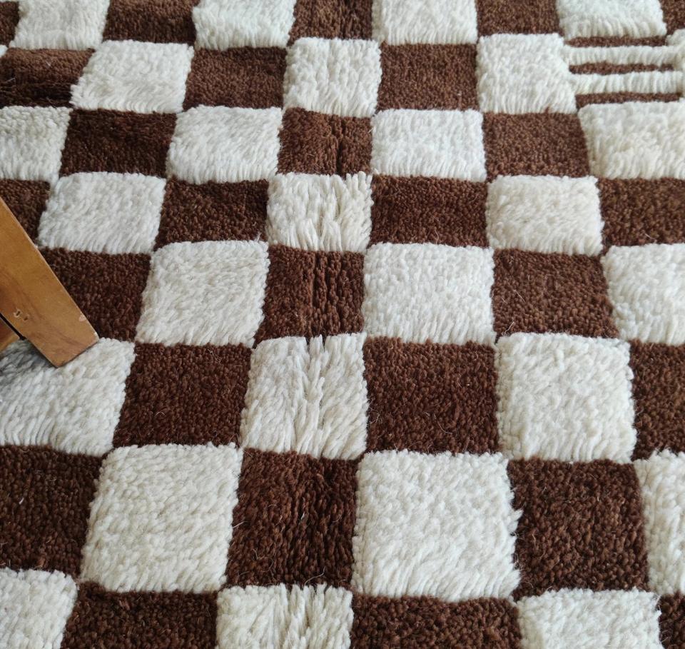 พรมทอมือแท้สไตล์โมร็อกโก ลายแบบนามธรรม เป็นมิตรกับสิ่งแวดล้อม หนานุ่ม สีน้ำตาลช็อกโกแลตและสีงาช้าง ขนยาวสไตล์เบอร์เบอร์ เรียบง่าย