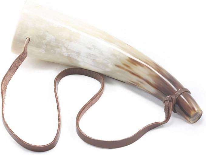 แตรเป่ามือทำสไตล์ไวกิ้งแท้ พร้อมลวดลายสัตว์ สำหรับตกแต่งบ้าน สายหนังคุณภาพสูง พร้อมถุงผ้ารูด