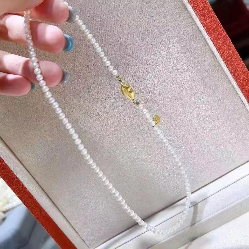 สร้อยคอเงินแท้ขัดเงาทำมือ ประดับมุกน้ำจืดสุดหรู ดีไซน์ทันสมัย พร้อมตัวล็อคแบบมีสไตล์ แบรนด์ดัง
