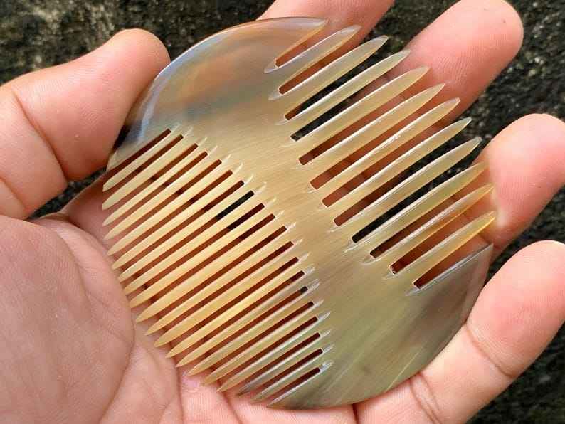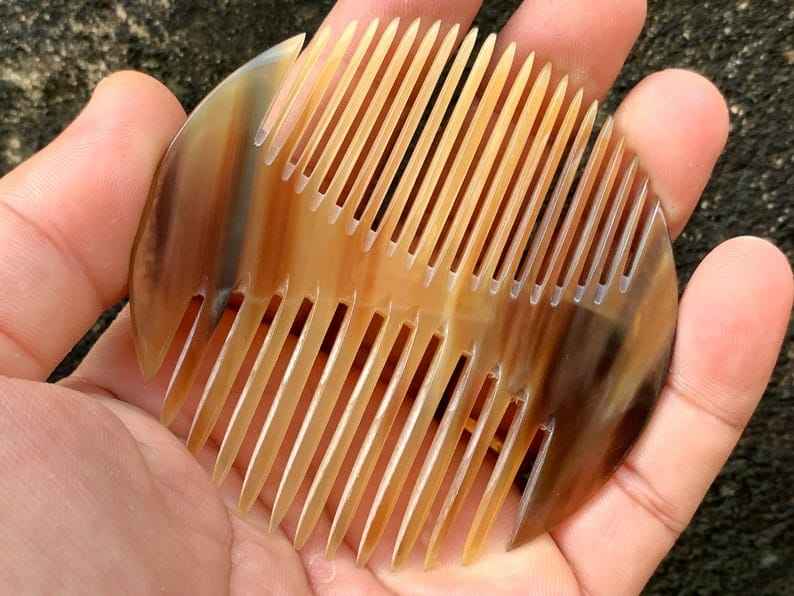 หวีผมเขาควายทำมือแท้ฟันกว้างเรียบช่วยลดการแตกของเส้นผมและเพิ่มความเงางามของเส้นผม