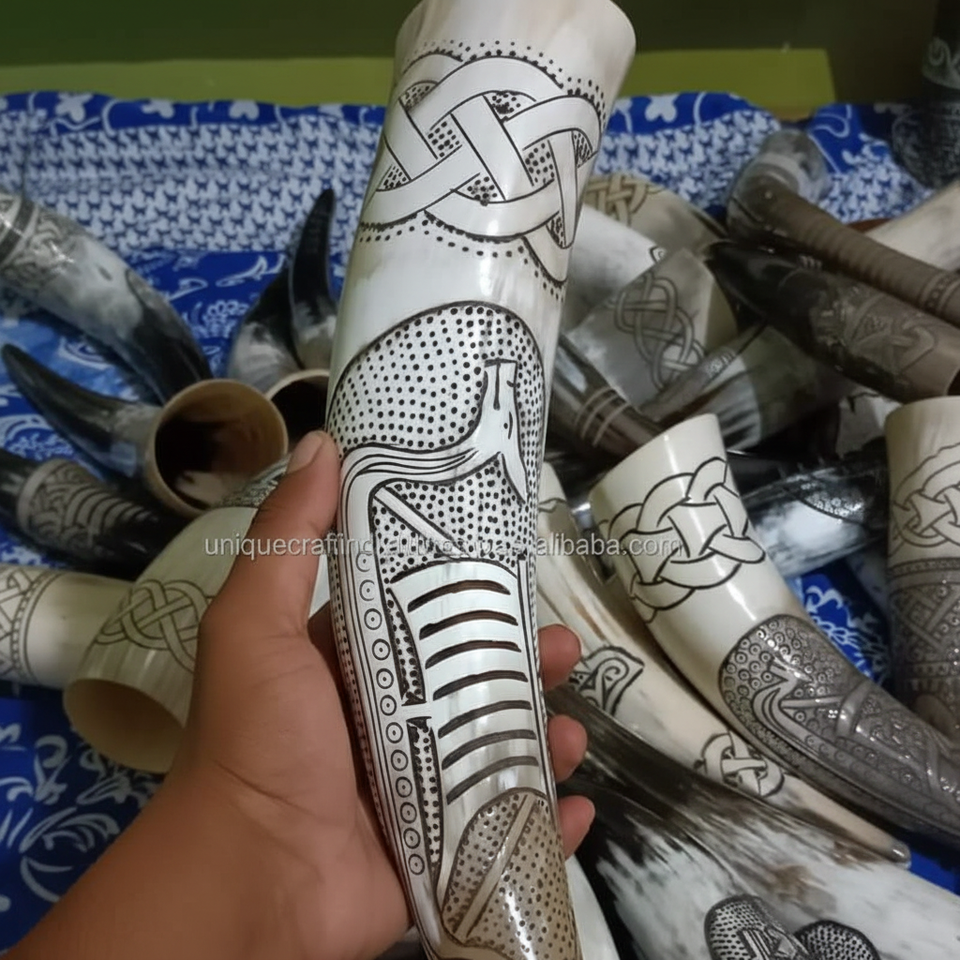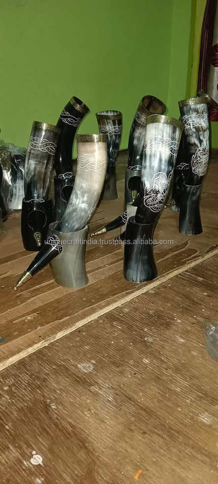 ฮอร์นไวกิ้งของแท้ทำด้วยมือเป็นมิตรต่อสิ่งแวดล้อมขาตั้งตกแต่งธรรมชาติสำหรับผู้รักเบียร์สไตล์สัตว์ขัดเงา