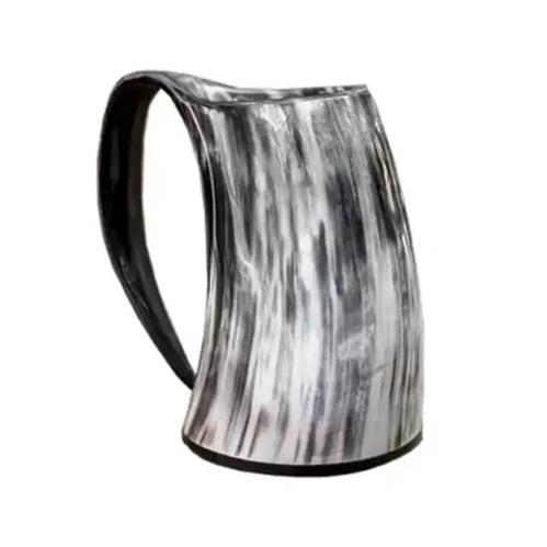 Authentic Handmade Natural Drinking Horn Tankard Premium Minimalist 15cm Leaf Pattern Mug for Party Beer & Mead