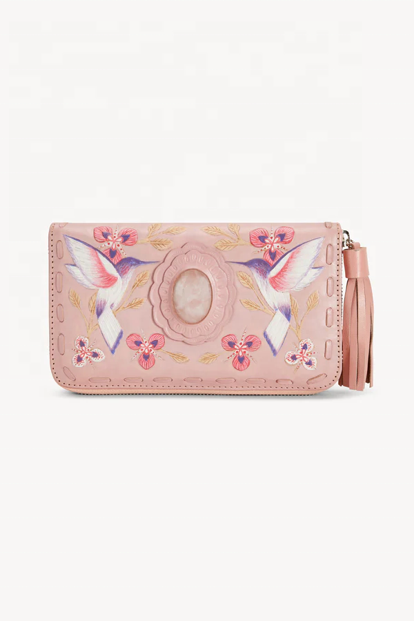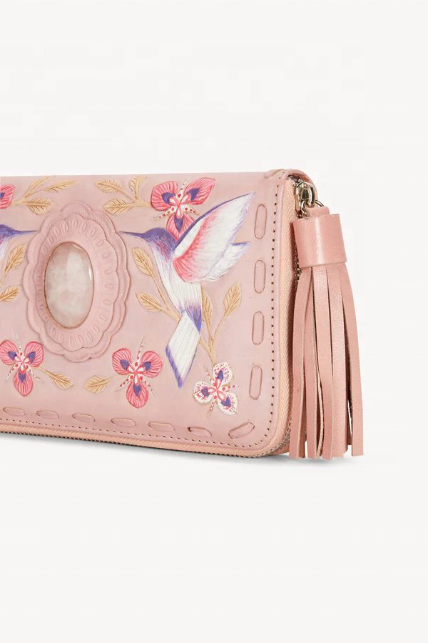 กระเป๋าคลัทช์ rabada ทำด้วยมือแท้ของผู้หญิงกระเป๋าคลัทช์ลายนกนกฮัมมิงเบิร์ดมอร์เลียดีไซน์ดอกไม้ของผู้หญิงรอบๆหินโรสควอทซ์แท้