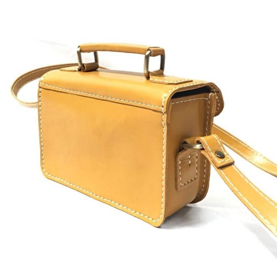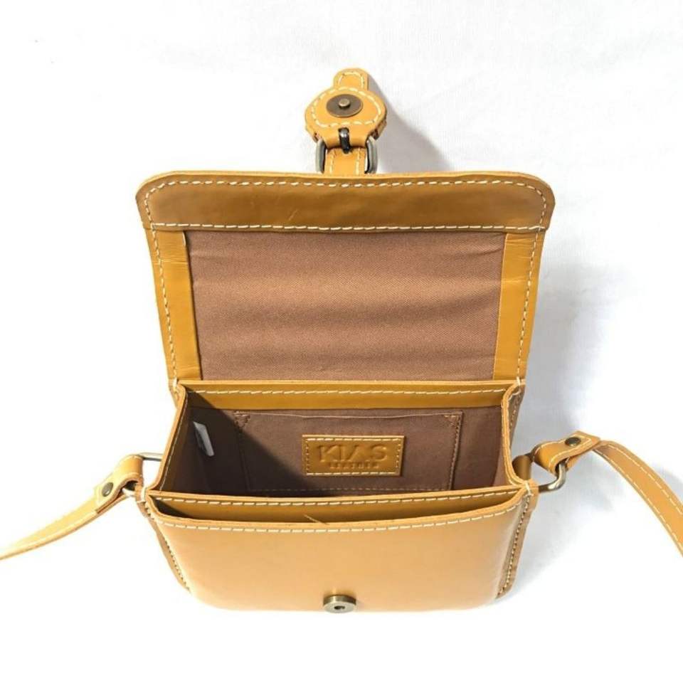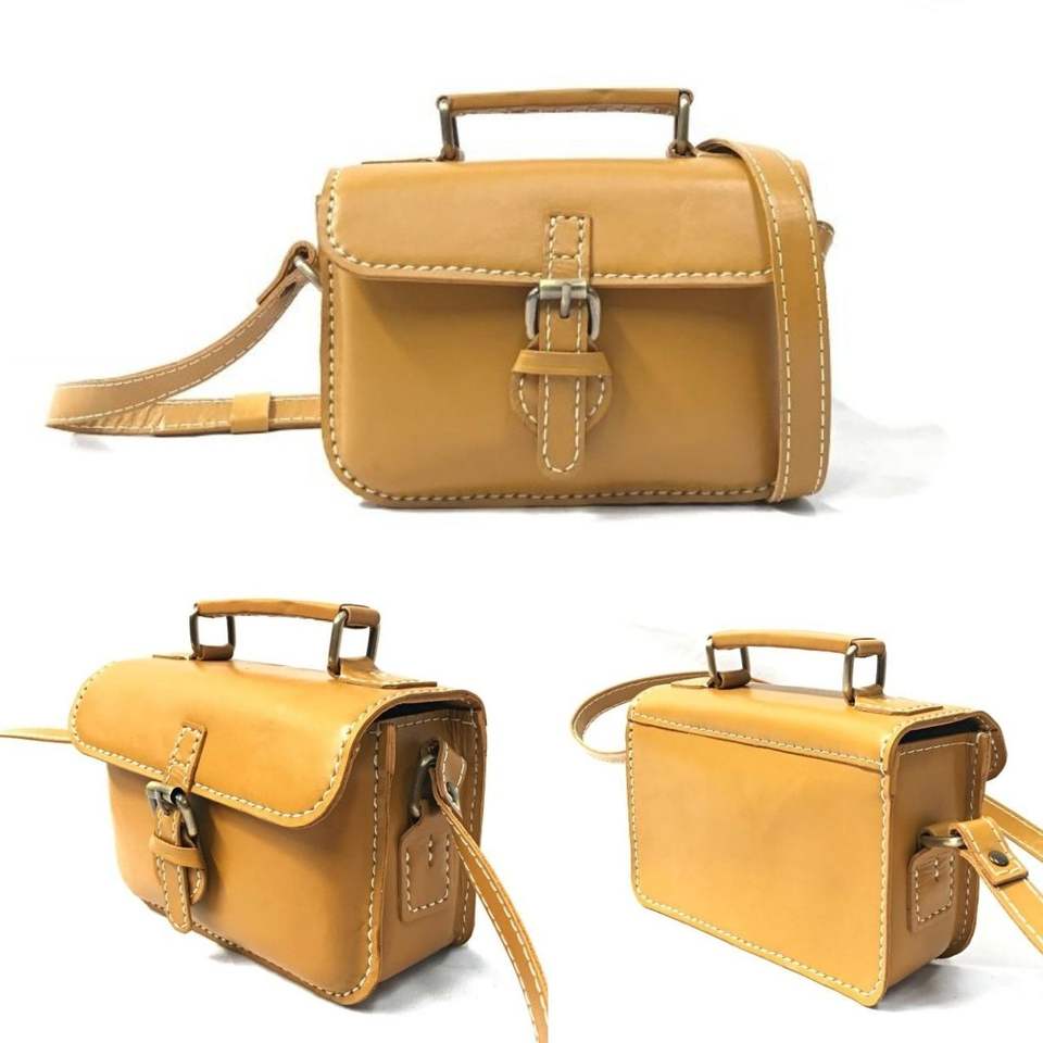 กระเป๋าหนังสีน้ำตาลทำด้วยมือของแท้กระเป๋าสะพายคาดลำตัวสไตล์วินเทจคลาสสิกพร้อมหัวเข็มขัดงานประณีตจากประเทศอินโดนีเซีย