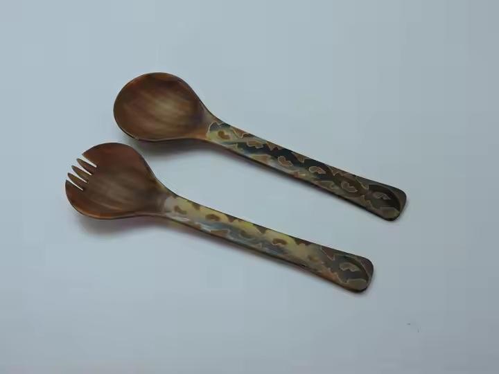 ชุดเครื่องใช้บนโต๊ะอาหารสไตล์ไวกิ้งแท้ทำมือวัวควายฮอร์นสลัดเซิร์ฟเวอร์สำหรับใช้ในครัวและของตกแต่ง