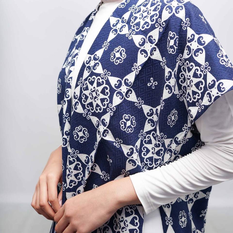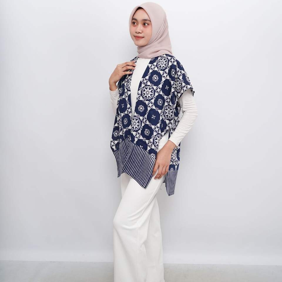 แจ๊กเก็ตมรดกสีน้ำเงินครามแท้พร้อมลวดลายผ้าบาติกที่ได้รับแรงบันดาลใจจากคลาสสิกและผ้าฝ้ายเนื้อนุ่มสง่างามทรงเรขาคณิตเหนือกาลเวลา