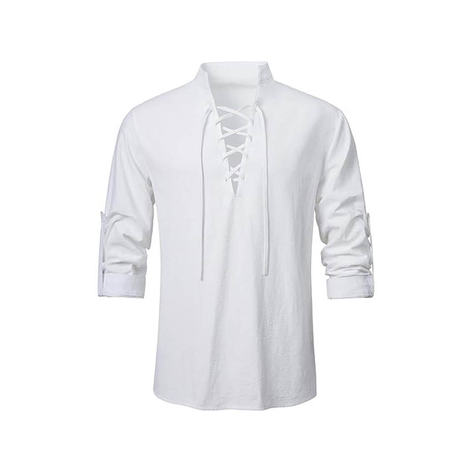 เสื้อเชิ้ตผ้าลินินแท้จาก Jacobite พร้อมด้านหน้าแบบผูกเชือกแบบคลาสสิกเหมาะสำหรับการสร้างใหม่และสวมใส่สบาย