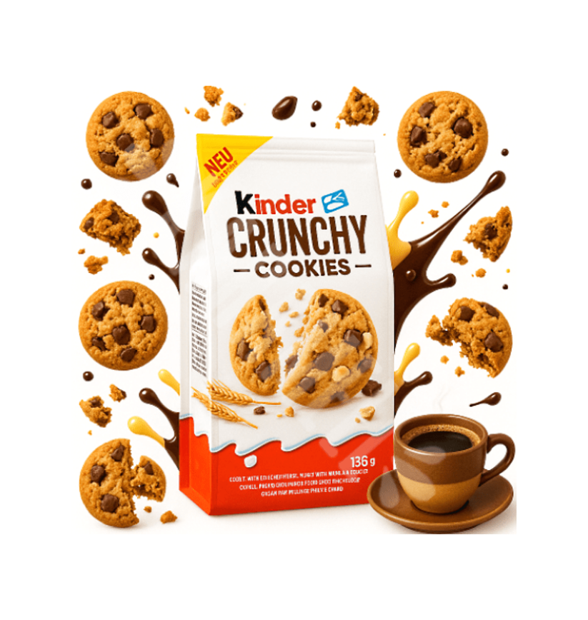 Authentic Kinderr Crunchy Cookies 15 x 136g Box 2kg Total Crunchy Cookies With Milk And Cocoa Chunks Wholesale Bulk Supply