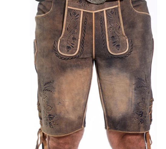 Lederhosen แท้ผู้ชายวินเทจสีดำ