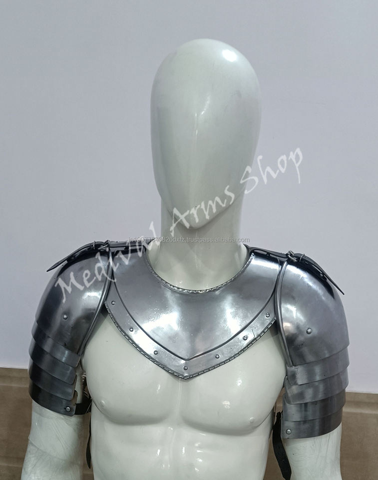 ชุดเกราะคอเหล็กยุคกลางแท้ ทำจากเหล็กกล้าอ่อน ขัดเงาด้วยมือ สำหรับคอสเพลย์ อัศวิน ชุดแสดงบทบาทสมมติ ฮาโลวีน ป้องกันลำคอ