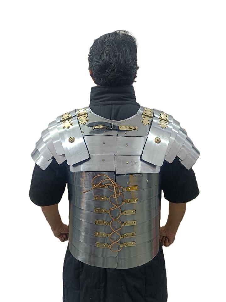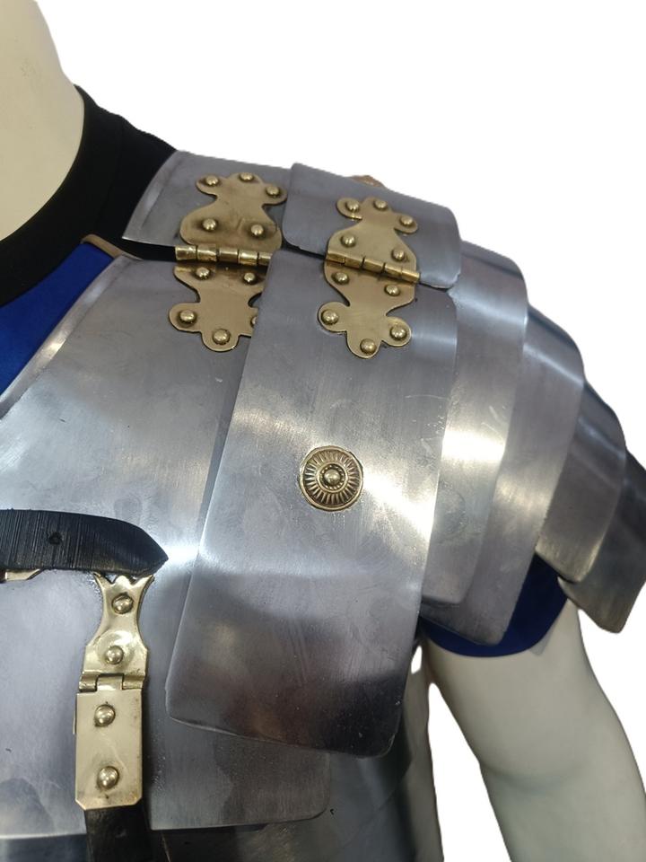 ชุดเกราะอกแบบโรมันยุคกลางแท้ งานแฮนด์เมด ทำจากเหล็กอ่อนโบราณ ตกแต่งด้วยทองเหลืองชุบ เหมาะสำหรับการแสดงบทบาทสมัยใหม่ในช่วงปีใหม่