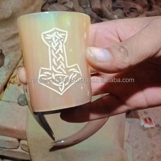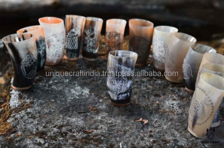 Authentic Medieval Viking Personalized Horn Tumbler Polished Natural Buffalo and Ox Horn Shot Glass with Wooden Base